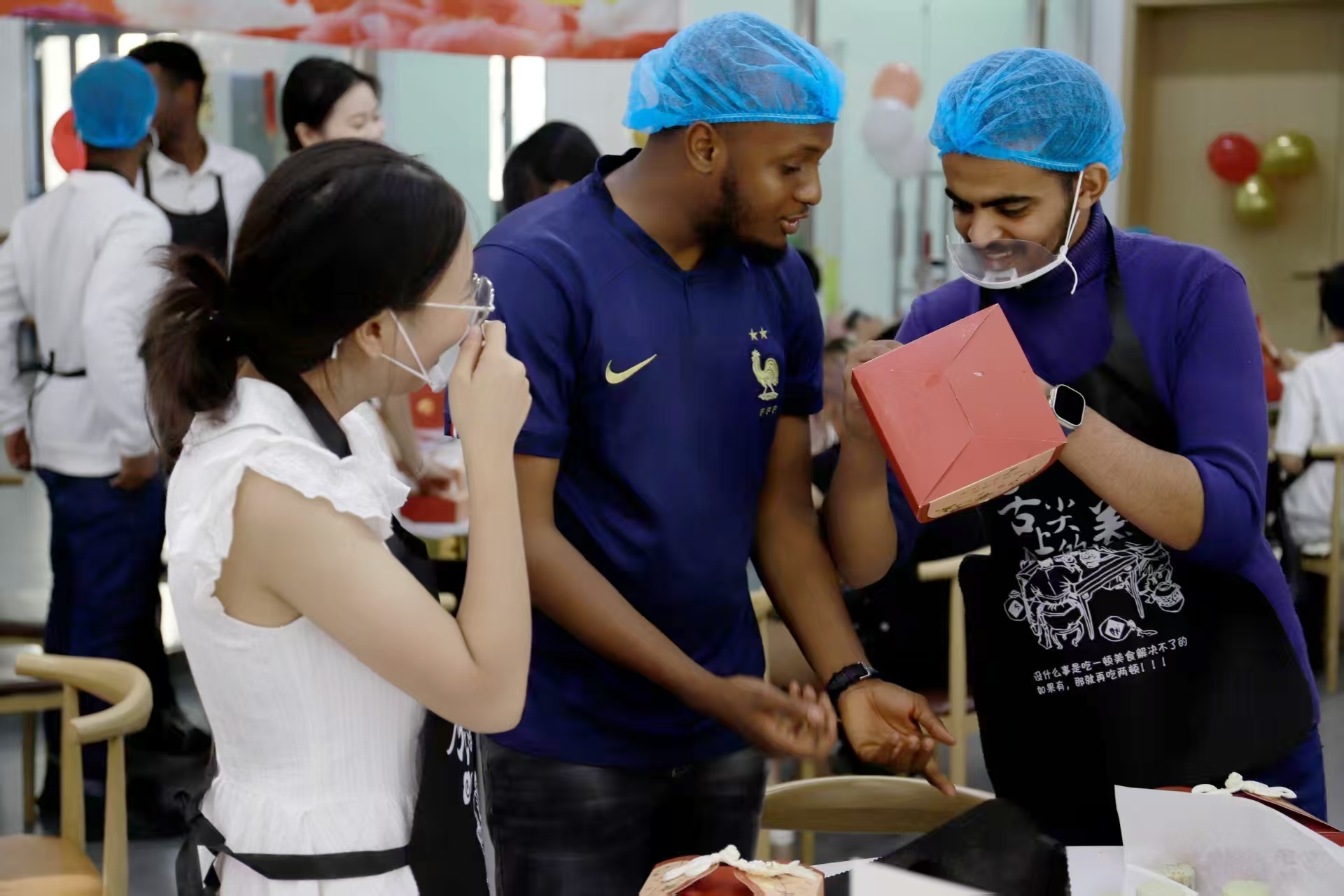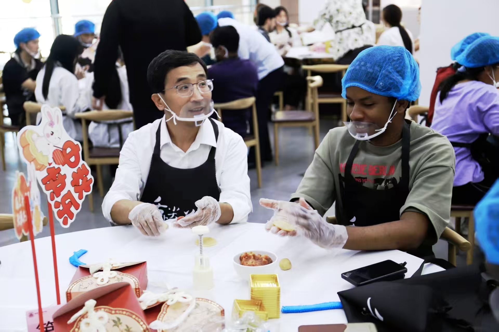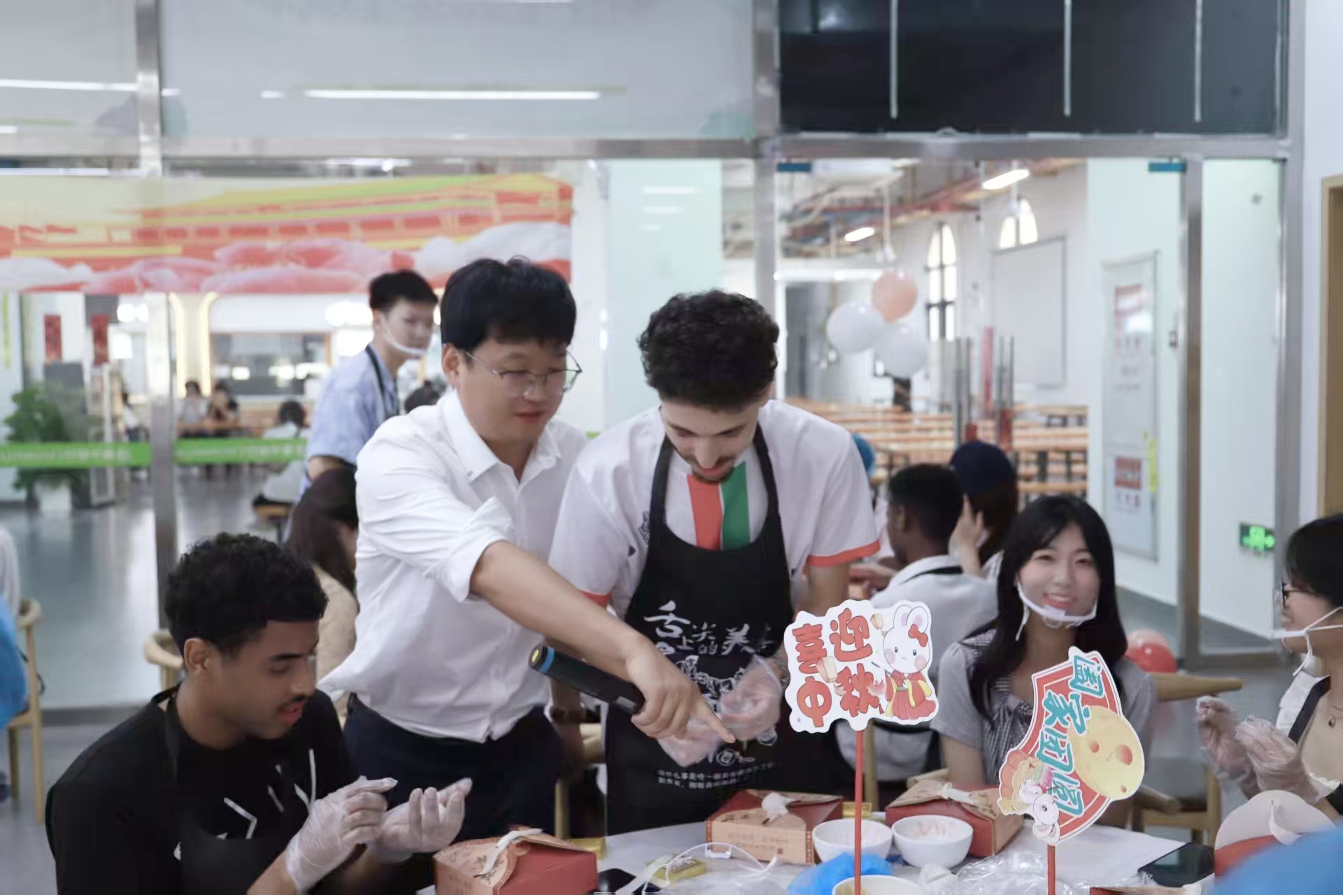 活动现场,不同国家的学生一边制作,一边分享各自家乡团圆糕点的故事。中方师生也热情解答着关于中秋习俗的提问,并好奇了解他国的节日传统。笑语声中,不同口音交织,不同文化在面团与馅料的融合中悄然对话。当一个个饱满的月饼在盘中整齐排列,空气中弥漫的不仅是饼皮与馅料的甜香,更是文化交流与情感联结的温暖气息。