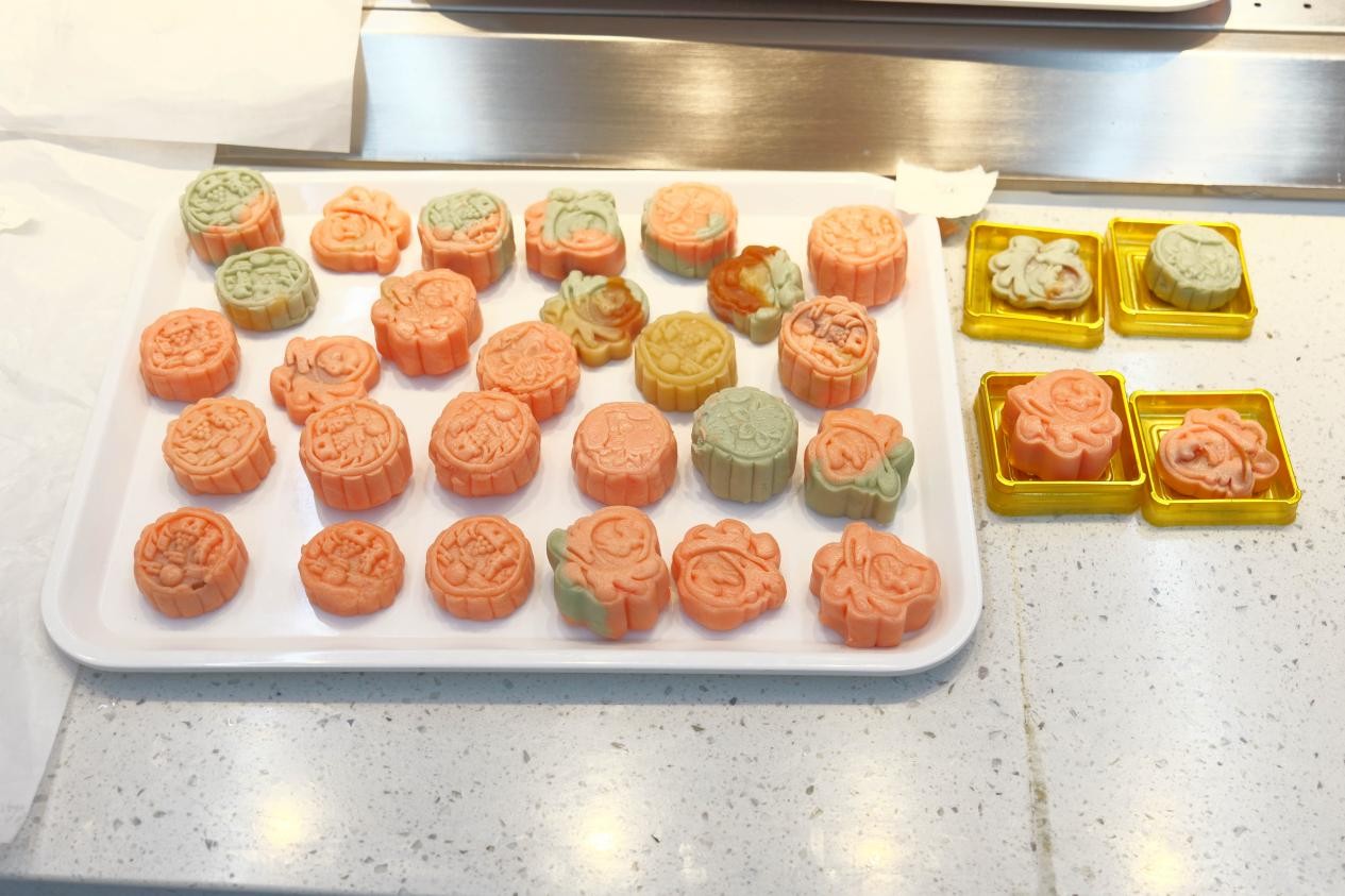 月饼制作环节,在张艳老师悉心指导下,中外师生直接投入到月饼的包制与成型环节。国际学生们对这项中国传统手艺展现出极大的学习热情。在福软伙伴和老师的协助下,纷纷动手尝试。从最初的生疏到逐渐熟练,一个个印有精美图案的月饼在大家的共同努力下逐渐成型。活动现场充满了欢声笑语,空气中弥漫着饼皮的油香与馅料的甜香,中外文化的交融在指尖的技艺传递中自然流淌。