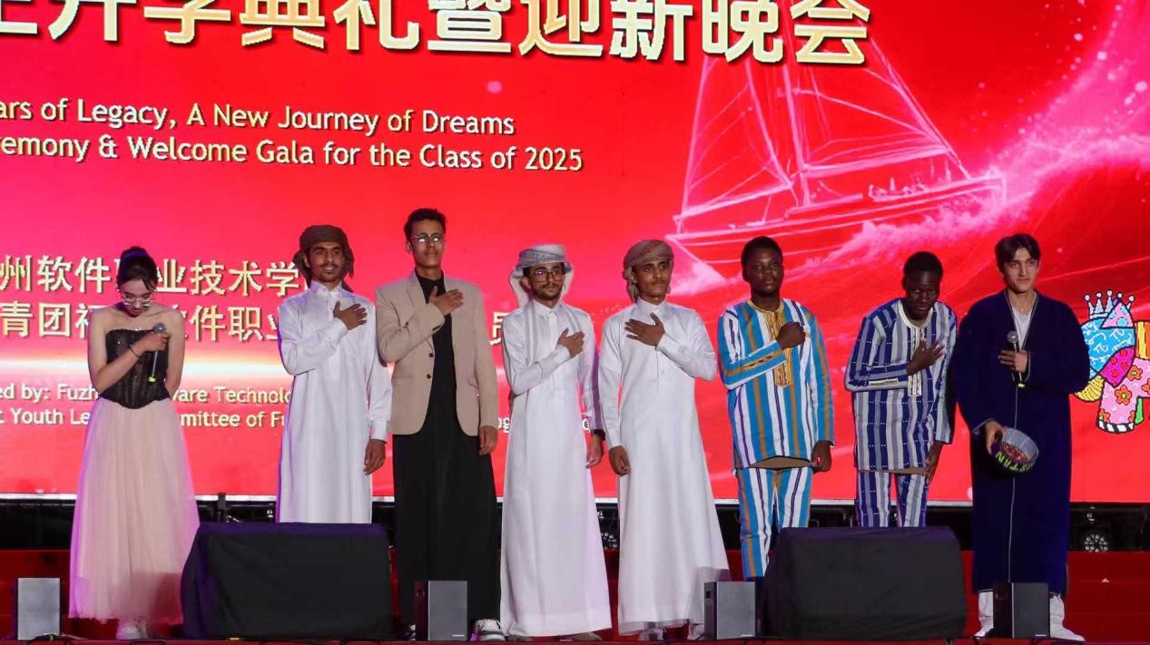 当晚,2025级新生开学典礼上,国际学院也门籍新生高伟身着传统服饰登台发言。他分享了自己学习中文的经历和初入福软校园的感受,并特别提到在与中国师生共同制作月饼的活动中深刻体会到"团圆"的文化内涵。高伟表示,真正的文化交流在于"亲手参与、用心体会",希望未来能将也门文化带给中国同学,成为连接中国与世界的文化使者。