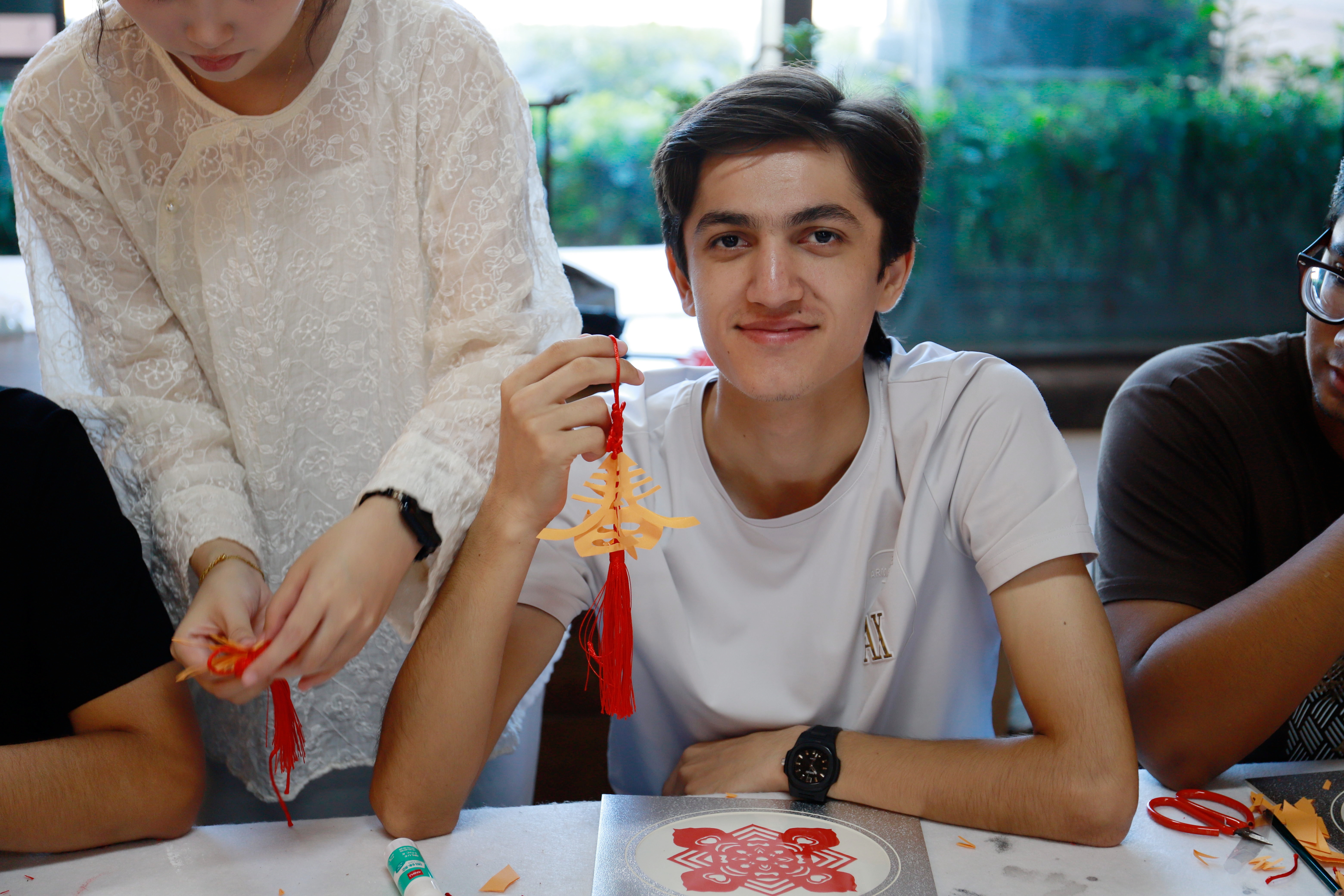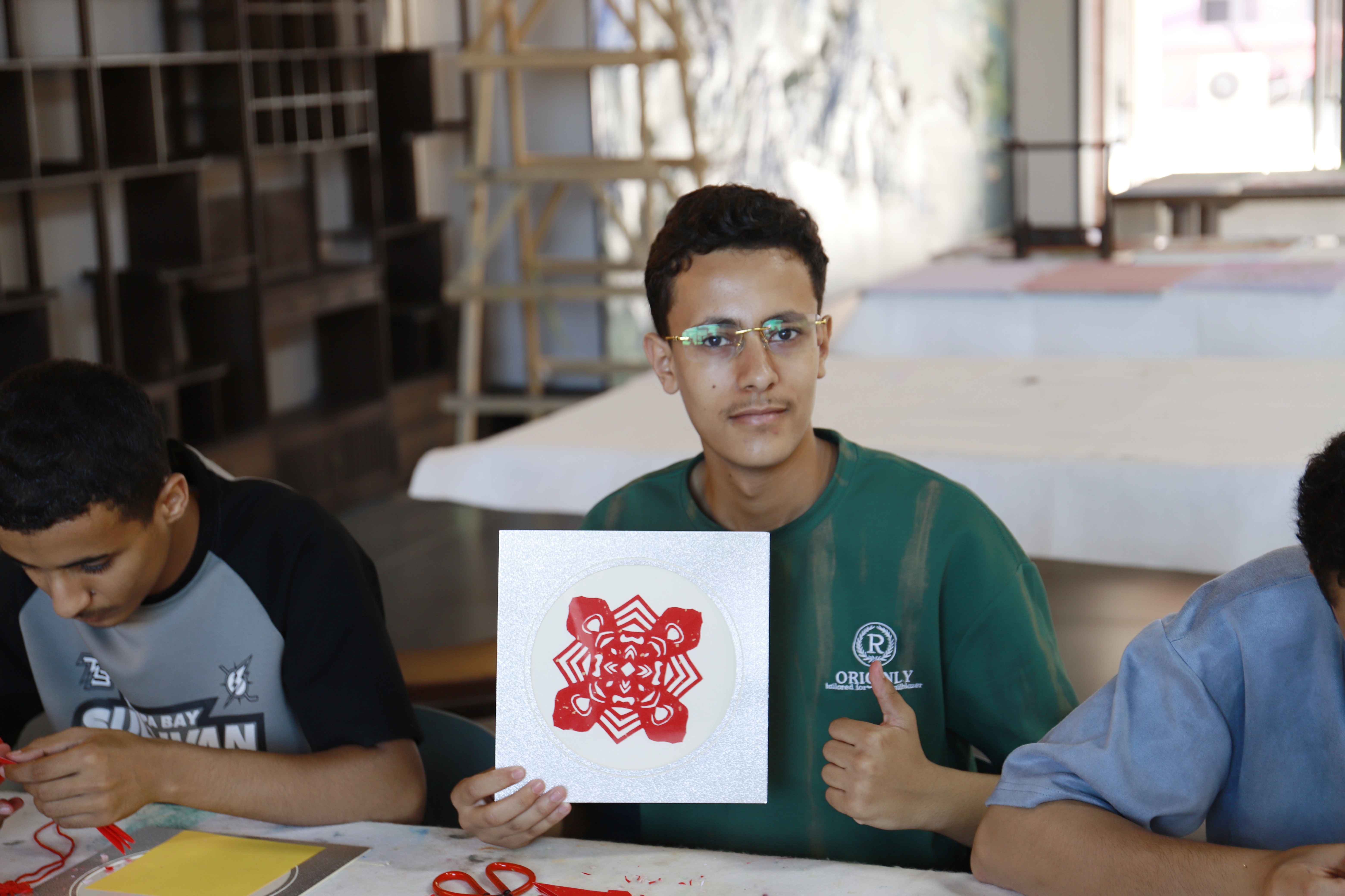 上午的剪纸活动在书画教室举行。在卓白云老师的指导下,国际语言生们认真学习了中国传统剪纸技艺,重点体验了富有吉祥寓意的窗花和"春"字剪纸创作。活动现场,红纸在指尖翻转,剪刀在纸上游走,一幅幅精美的剪纸作品逐渐呈现。这些充满中国传统文化特色的艺术创作,让国际语言生们深刻感受到中国民间艺术的独特魅力。