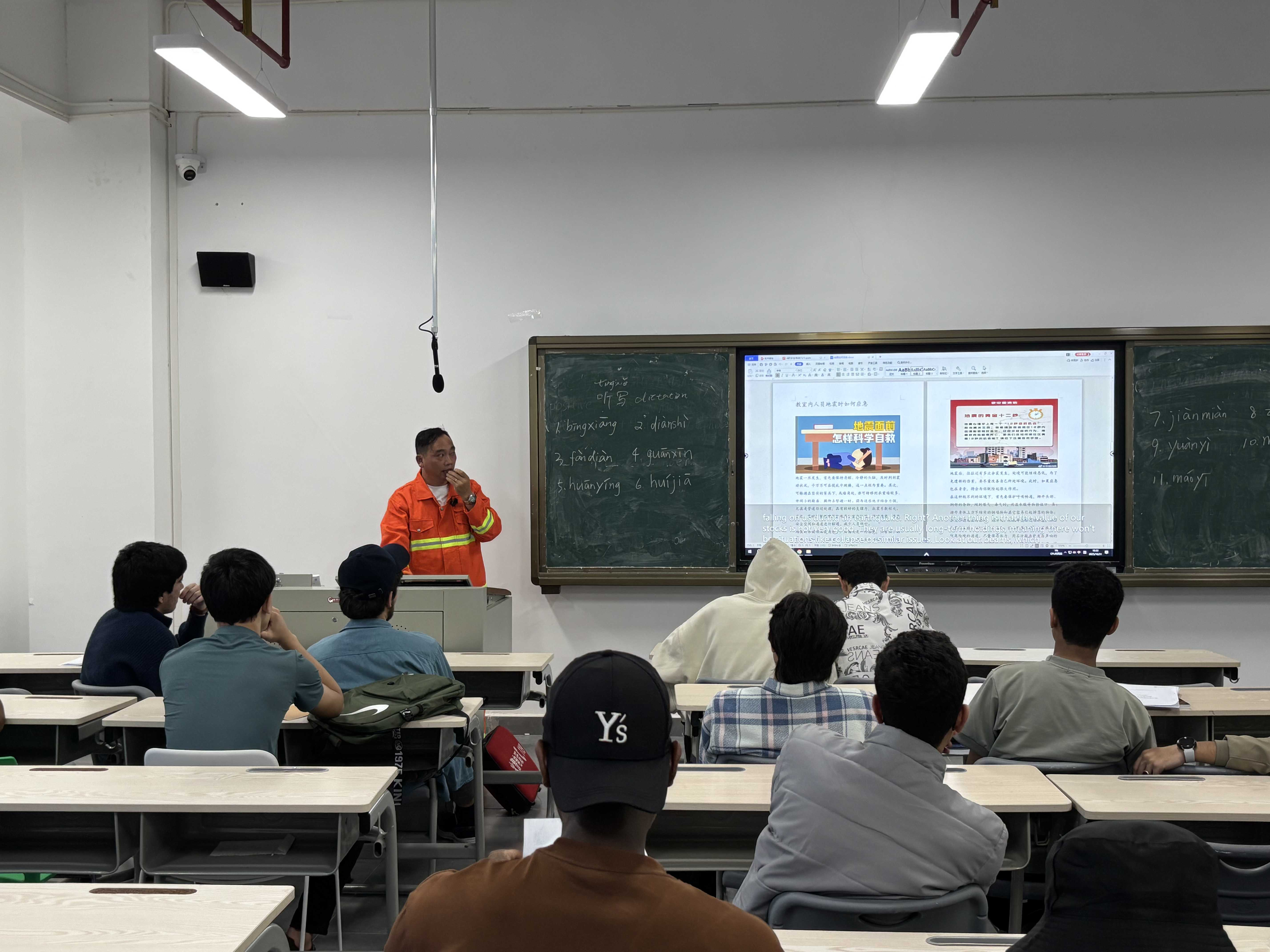 在理论教学环节,消防教官围绕消防急救要点、火场逃生技巧等关键知识进行了系统讲解,并结合本地校园火灾案例,加深国际语言学生的安全认知,助力他们掌握消防安全规则,增强在日常生活场景中的火灾预防能力。